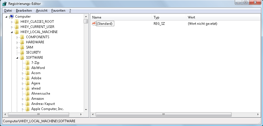 Font-Liste der Systemsteuerung! Um den Darstellungsfehler zu korrigieren muss man also die korrekte Zuordnung wieder herstellen, was über den Registrierungseditor von Windows möglich ist. Dazu klicken Sie links unten auf das Windows-Symbol und dann auf "Ausführen", dann geben Sie regedit ein und betätigen die <enter>-Taste. Es öffnet sich, nach einer Sicherheitsmeldung, der Registrierungseditor: Achtung: Die Manipulation von Daten in der Registrierungsdatei von Windows muss sehr bewusst erfolgen, weil falsche Einträge zu schwerwiegenden Problemen am Betriebssystem führen können. Ggf. lassen Sie die Korrektur also von einem erfahrenen Administrator ausführen! ![]() Hier hangeln Sie sich links nacheinander durch folgende Ordner: HKEY_LOCAL_MACHINE SOFTWARE MICROSOFT ![]() WINDOWS NT CurrentVersion ![]() Fonts Hier nun suchen Sie rechts den Eintrag "MS Sans Serif 8,10,12,14,18,24" - mit der rechts davon zugeordneten Datei. ![]() Per Doppelklick auf den Eintrag rechts können Sie die Font-Datei editieren und den Dateinamen sseriff.fon durch sserife.fon ersetzen. ![]() Spätestens nach einem Windows-Neustart wird "HS Nettoeinkommen Pro" dann normal und wie erwartet aussehen: ![]() |